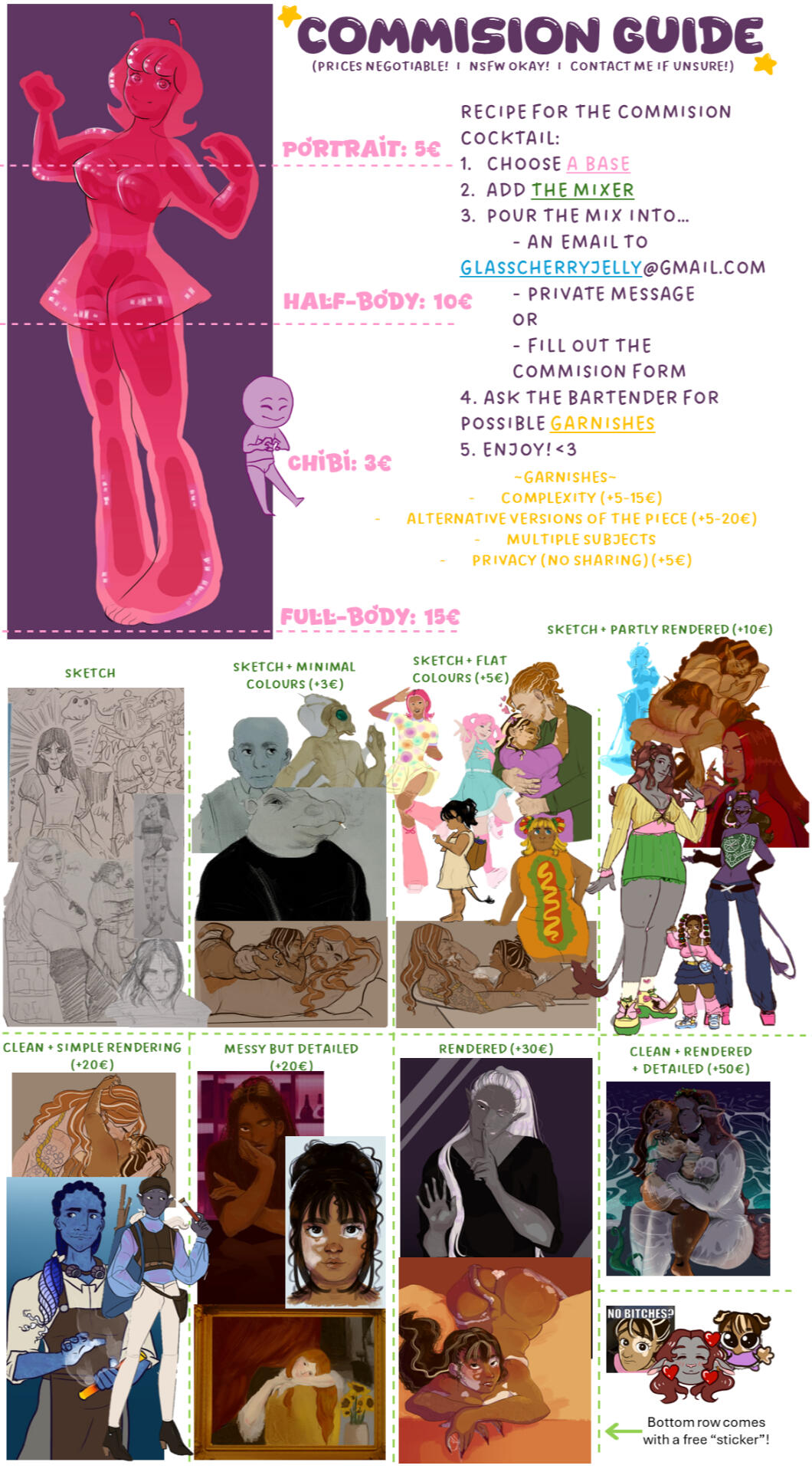 Full-body 15€ + partly rendered 10€ = 25€